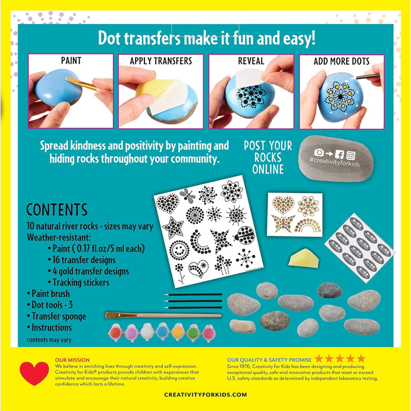 ДРУЖНЕ ДЛЯ ДІТЕЙ МИСТЕЦТВО НА КАМЕННЯХ - Створюйте точки та візерунки з легкістю! Розроблене для новачків, це заняття з рукоділля постачається зі зручними для дітей пензлями для нанесення фарби та різноманітними малюнками для перенесення зображень на каміння, що допоможуть вам почати. Використовуйте губку і воду, щоб нанести малюнки на камені