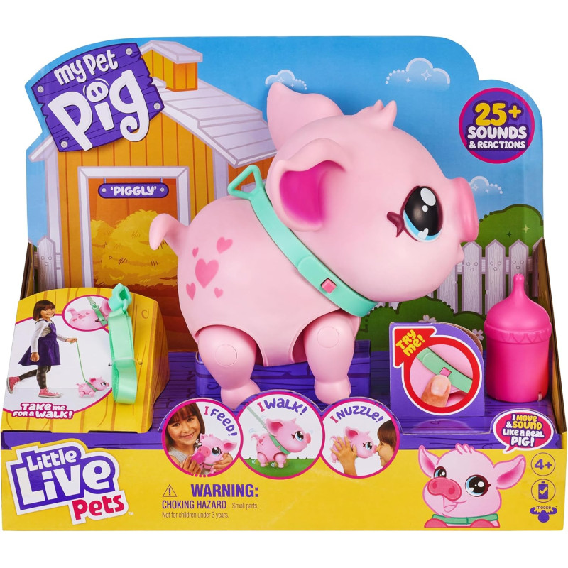 Милий маленький Піглі, який любить гуляти й танцювати. Маючи понад 25 звуків і реакцій, Пігглі рухається і видає звуки, як справжня свиня. 2 режими роботи: режим догляду та режим танцю. Реагує на дотики, любить обійматися. Крім прогулянок, він ще любить танцювати під музику, яку грає. А після цілого дня гри погодуйте її з пляшечки, щоб надати сил для нової порції веселощів.